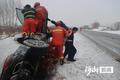 张家口万全:大雪天车辆侧翻 消防员紧急